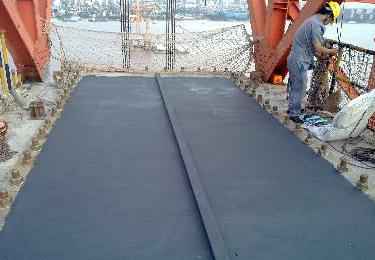 中欧网页版-中欧(中国)员工在做复合润滑涂层,跨江大桥鞍体鞍座润滑工程系统,公路大桥鞍座与座体间自润滑减磨结构,技术方案:钛晶核处理技术,二硫化钼自润滑减磨涂覆技术,超润滑石墨希氟油涂覆技术,高强二硫化钼合金珠分布技术,抗高极压二硫化钼油脂技术,五种技术优势的叠加形成的复合涂层。